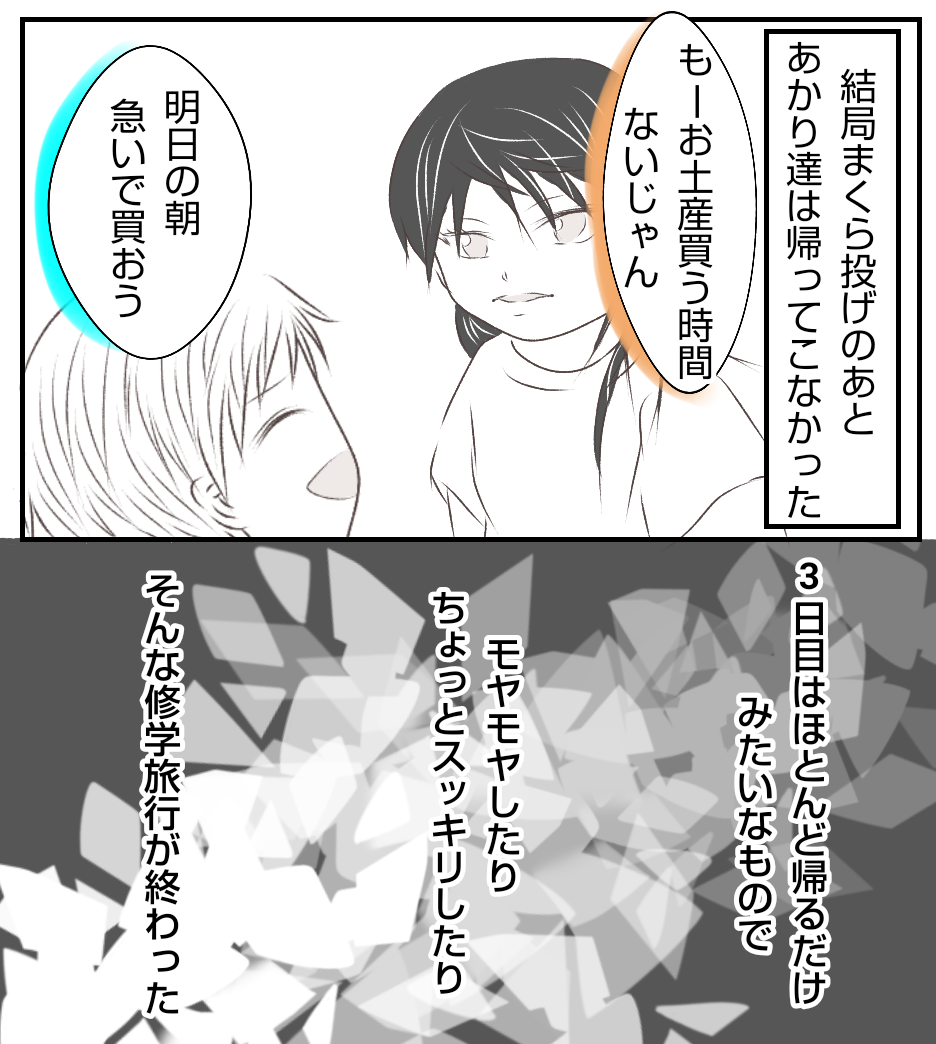 ちなみに修学旅行3日目は、あかりやきいからガン無視くらいましたが、りんのおかげでスッキリしてたので気になりませんでした(笑)