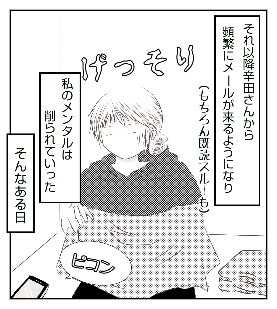 辛田さんからのメールの何が具体的に辛かったかは次回描きたいと思います。(既読スルーももちろん嫌でした)