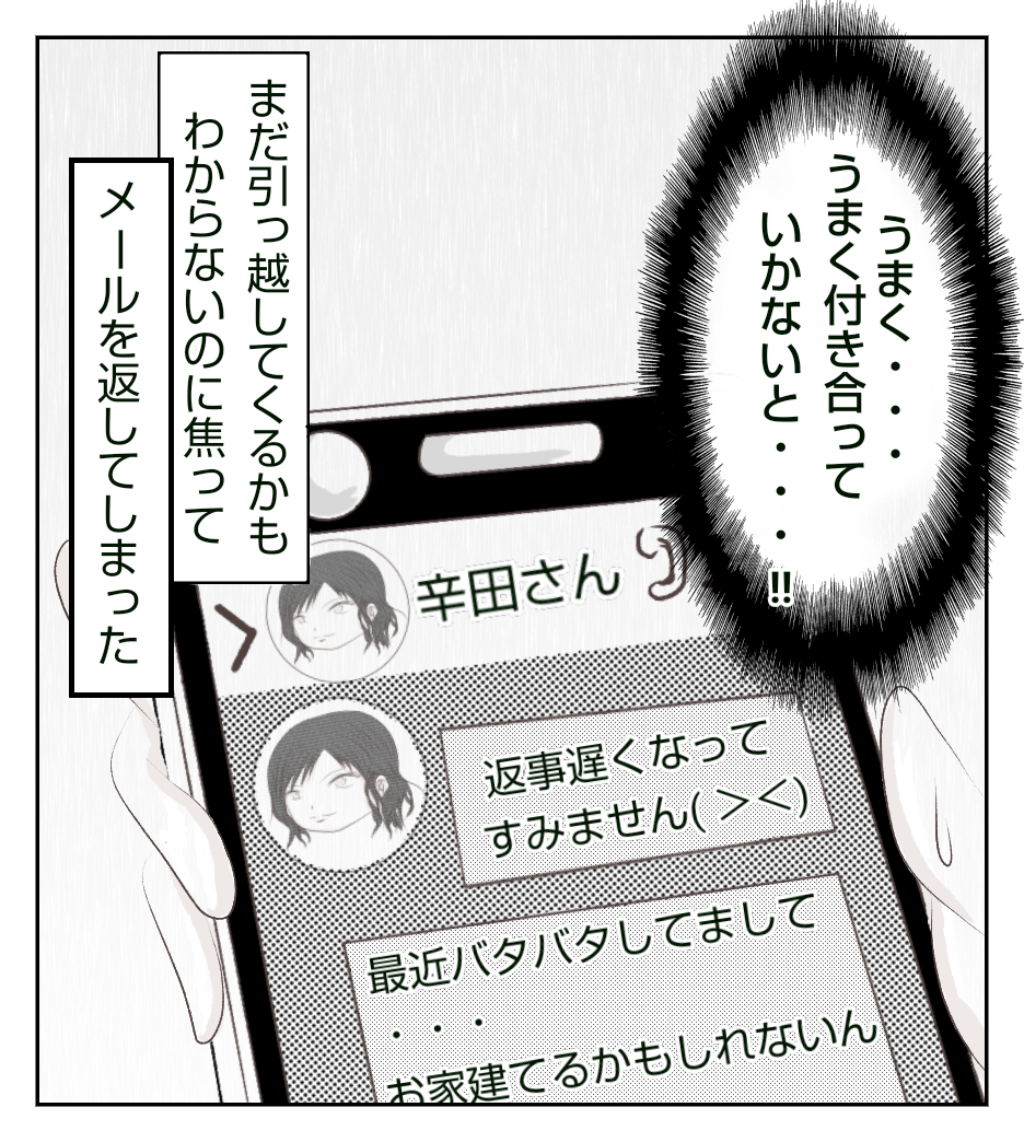 前回、辛田さんから私と同じ町に引っ越すかもとメールが来て・・・