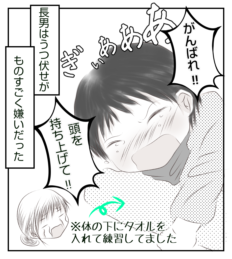 長男はうつ伏せ大嫌いで、練習の時は毎回ギャン泣きでした😭