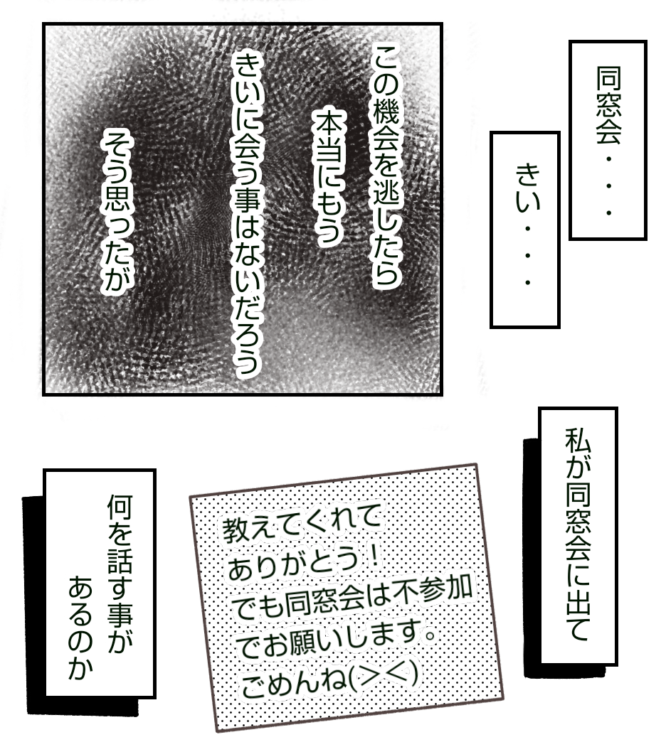 きいからお土産があるということで、みーりーとカフェで再び会って、同窓会の話を聞くのですが・・・