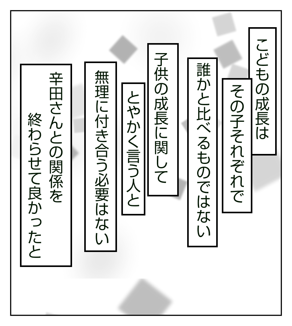 私がこの話を描いて伝えたかったのは、『嫌な気持ちになる人とは無理に付き合う必要はない』ということと、『長男は2歳でやっと歩いたけどこういうケースもあるよ』ということでした。