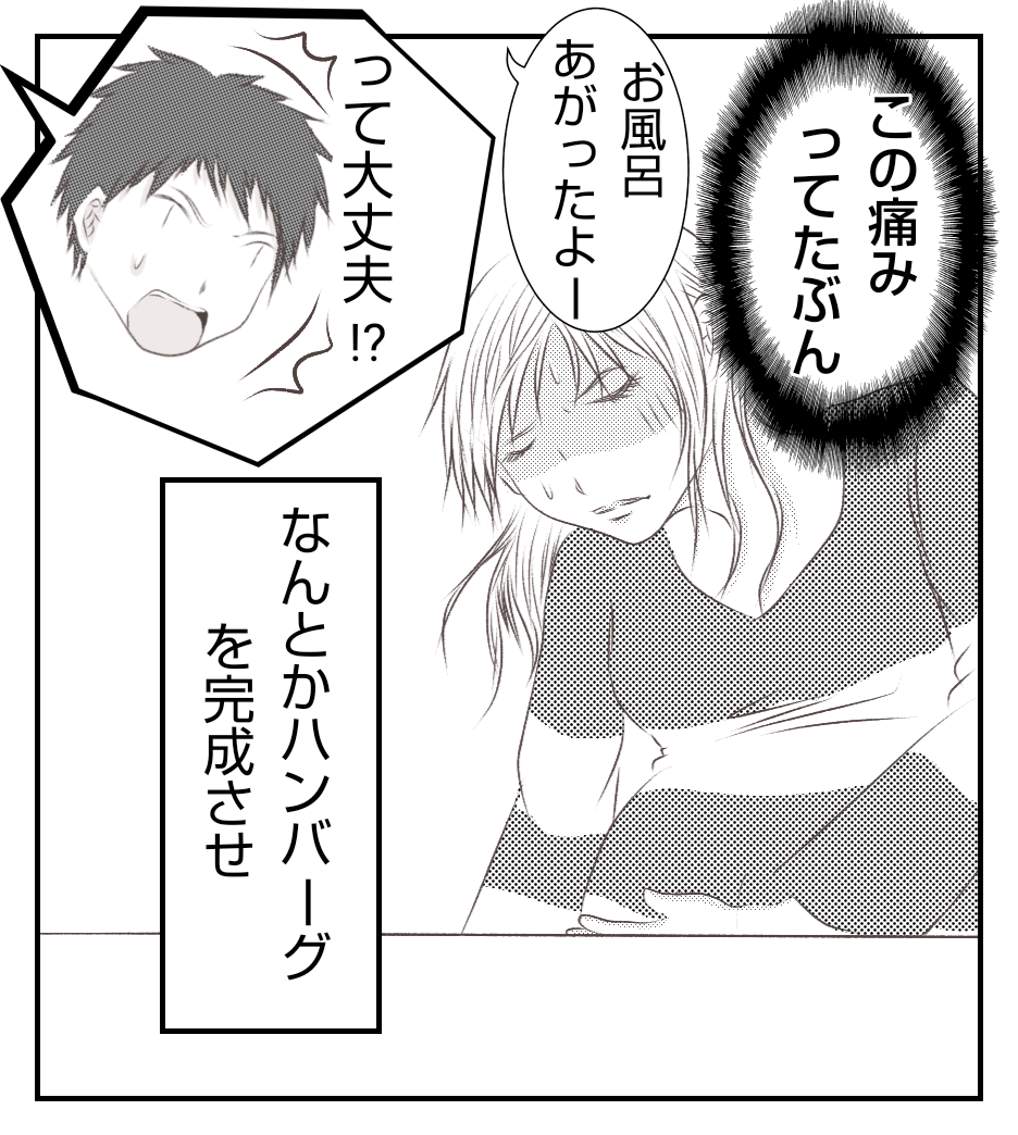 前回、前駆陣痛と思いきやハンバーグを作ってる途中でドシンとした痛みが・・・!!