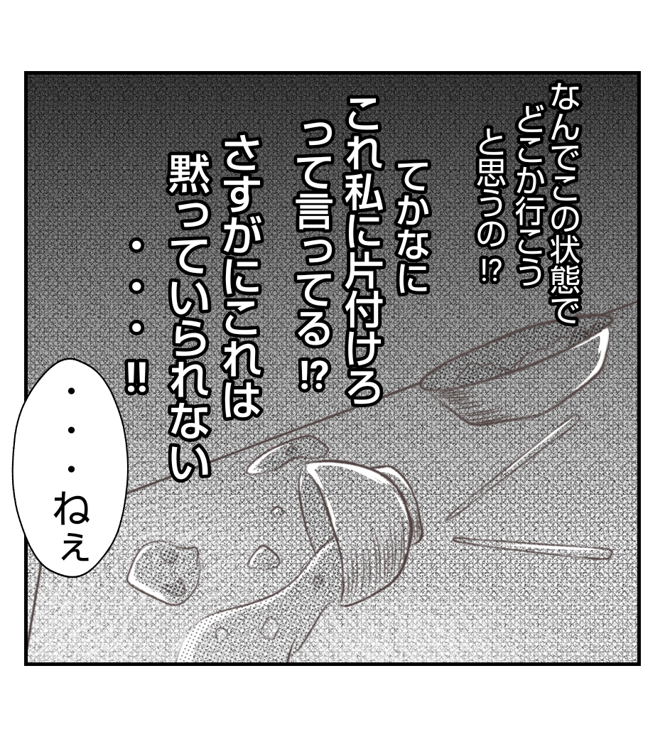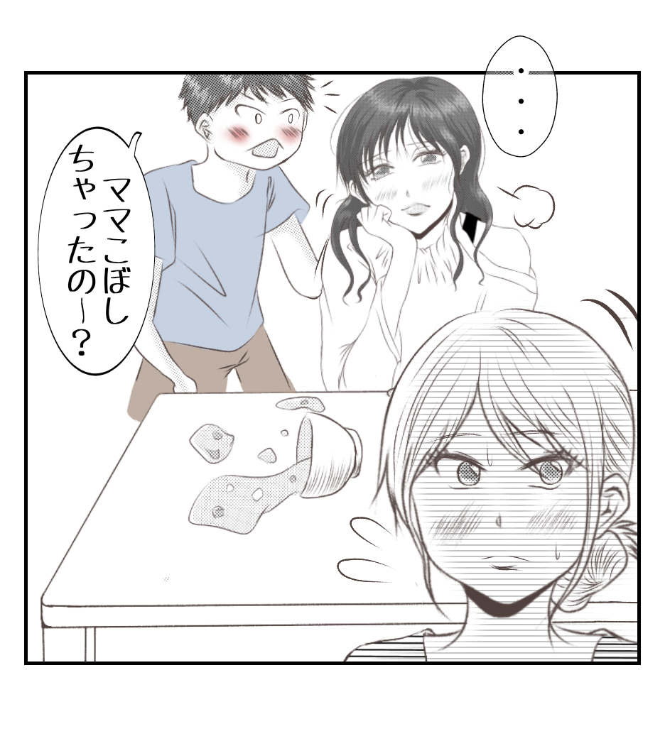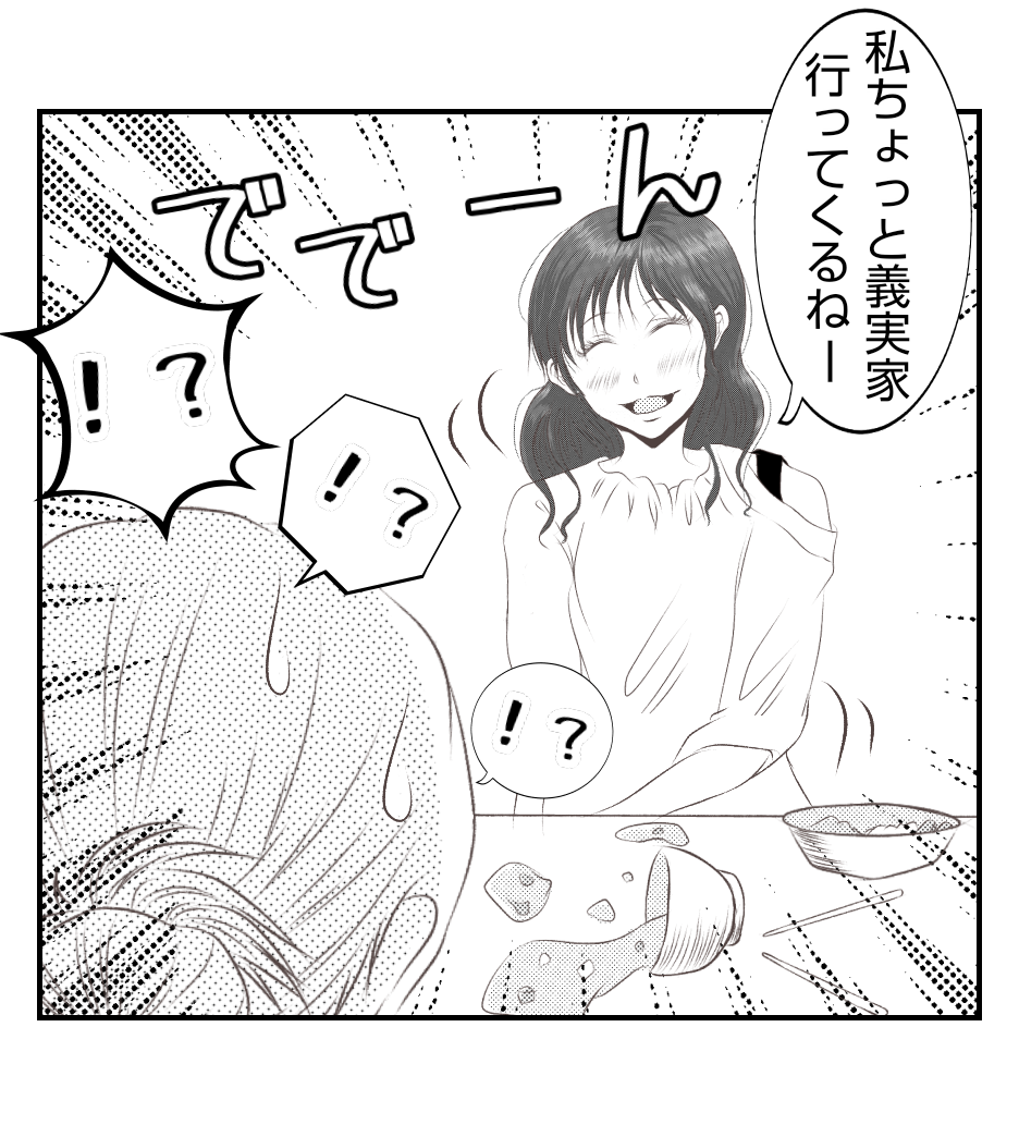 自分がこぼしたのに、一切片付けようとせず義実家に逃げようとするあほ子・・・