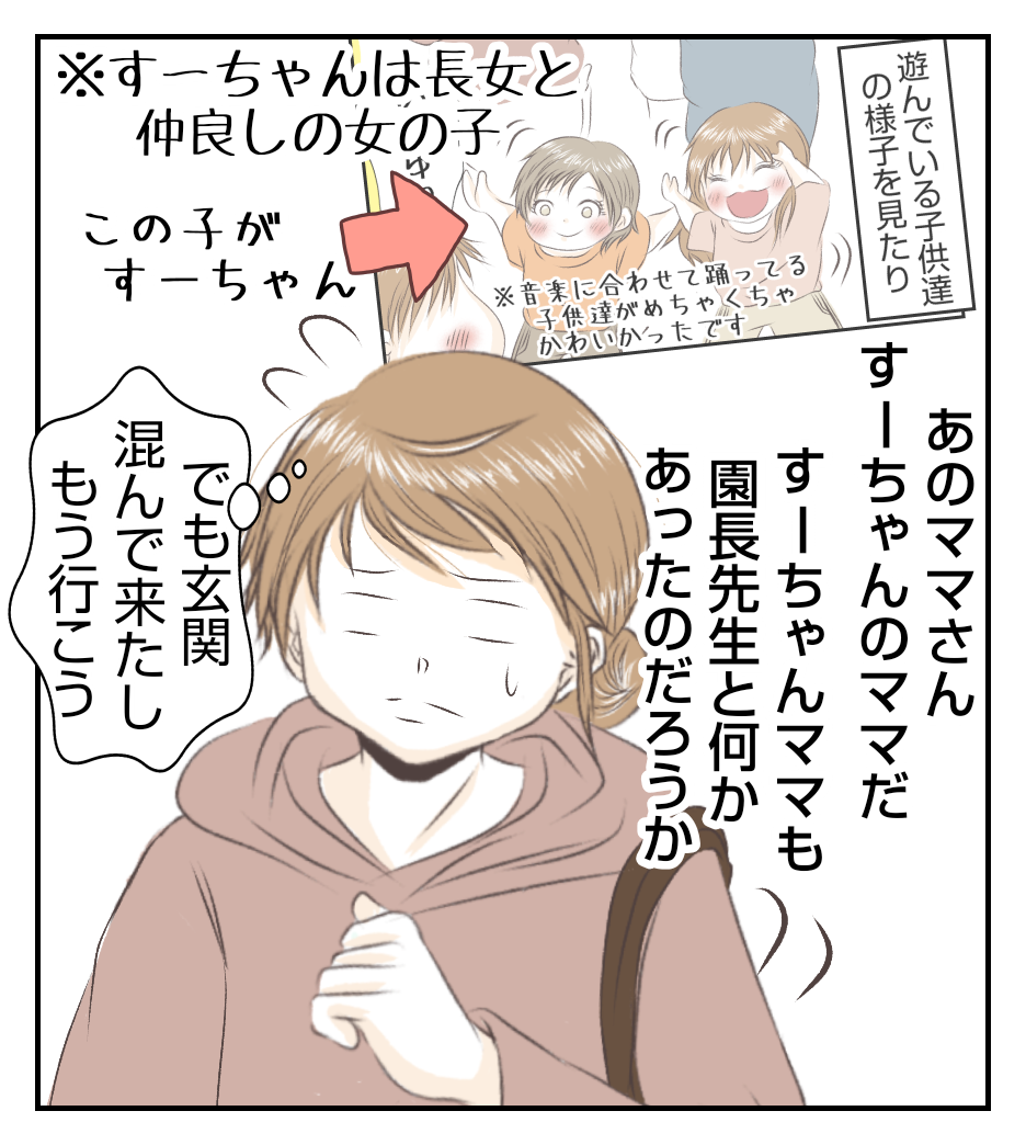 すーちゃんママに話しかけたかったけど、玄関が混んできたので話しかけられず・・・💦
