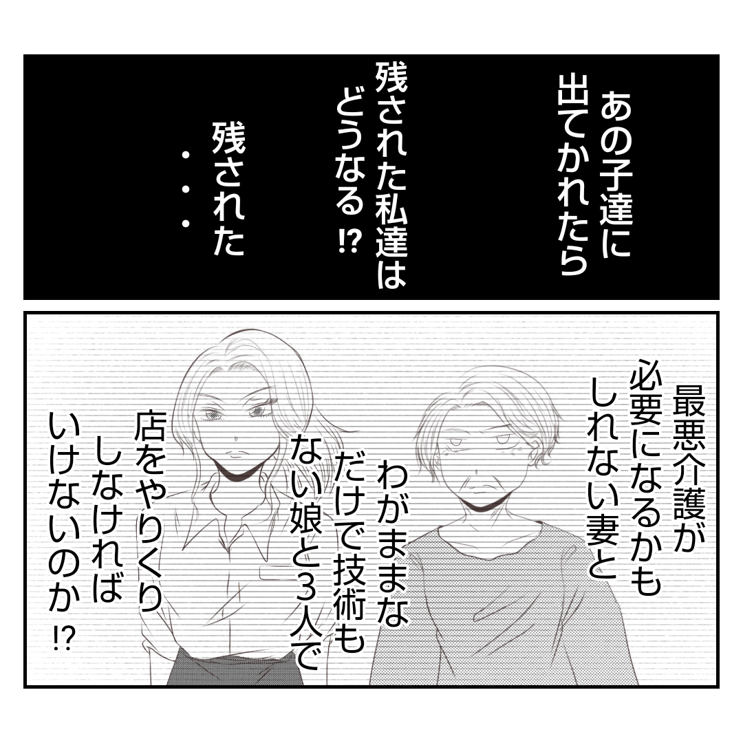 息子夫婦に居てもらいたいなら、義姉が店に関わらせないようにするか、出て行かせないと無理だよ
