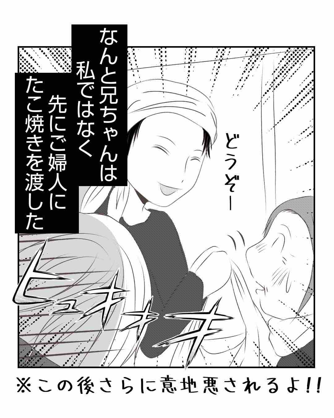 前回、たこ焼き屋の兄ちゃんは先に待ってた私より、後に来たおばさまにたこ焼きを渡しやがりました⬇️