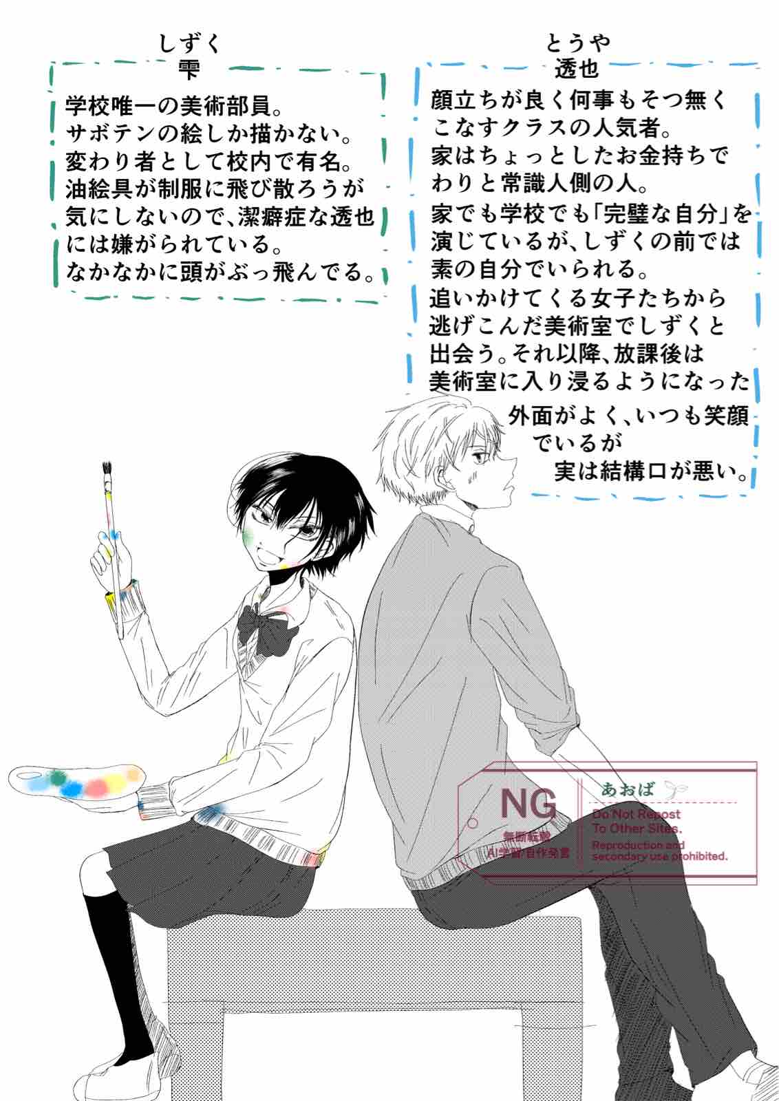 頭がぶっ飛んでいる女の子に振り回されるイケメンが描きたくて描きました。