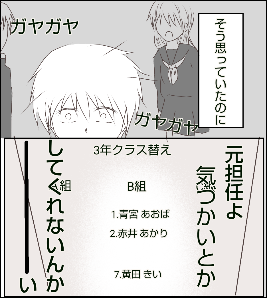 本当はクラスを離してほしいとお願いしに行きたかったけれど、後からバレて何か言われたらどうしようと心配で当時は言いに行けませんでした。